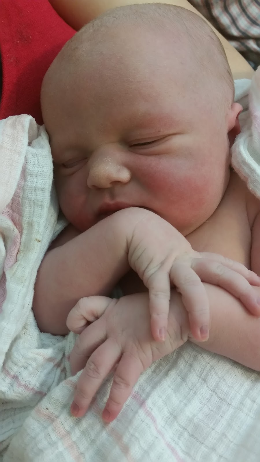 Quite the birth story--about a 16 hour labor and since labor started in the late afternoon on the 8th, it was many hours without sleep!